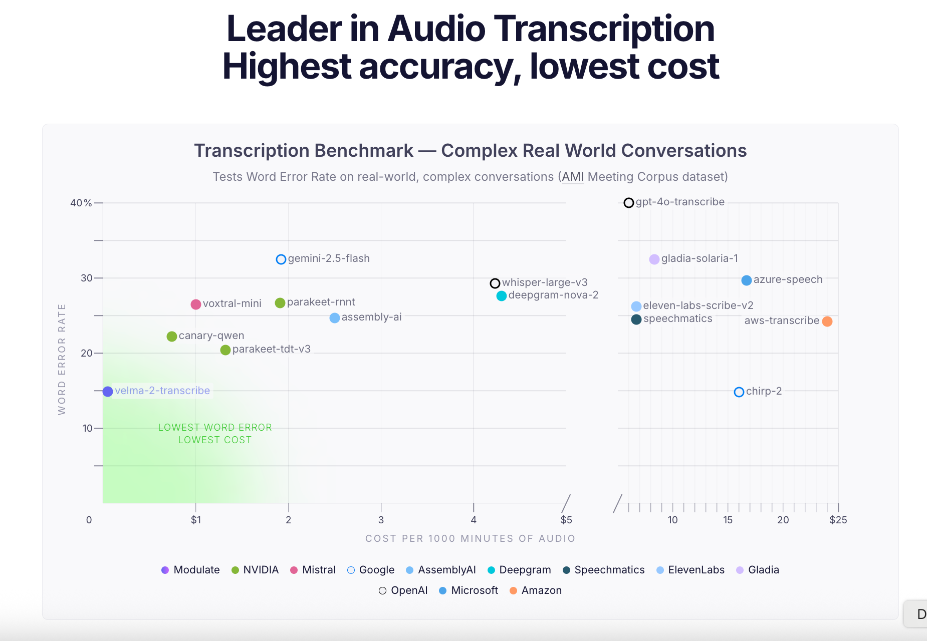 Real conversations, real results. Trained on over 500 million hours of conversational speech, Velma achieves 14.9percent Word Error Rate on the AMI Meeting Corpus benchmark and transcribes effectively in many real world scenarios.